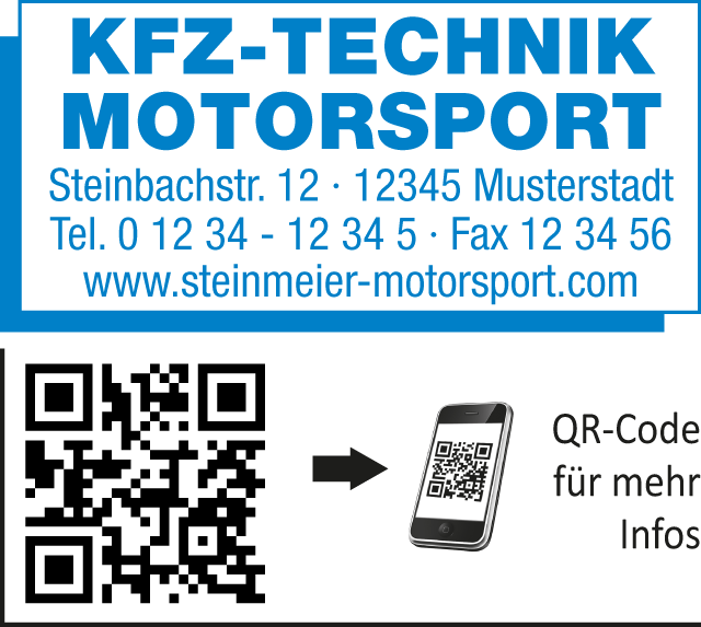 Die meisten unserer Werbemöglichkeiten können um einen QR-Code ergänzt werden. Dieser enthält entweder eine kurze Visitenkarte zu Ihrem Unternehmen mit Anschrift, Telefonnummern, Öffnungszeiten und einem Infotext, oder eine direkte Weiterleitung auf Ihre Webseite. So bieten Sie Ihren Kunden und Interessenten eine schnelle und bequeme Möglichkeit, weitere Informationen abzurufen, ohne erst umständlich eine Webadresse eintippen zu müssen. Unser Service beinhaltet die Erstellung und Verwaltung Ihres QR-Codes sowie die Möglichkeit, diesen inhaltlich jeder kostenfrei ändern zu lassen.
